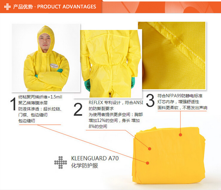 產(chǎn)品名稱:金佰利 A70化學(xué)防護(hù)服(大號(hào))9813