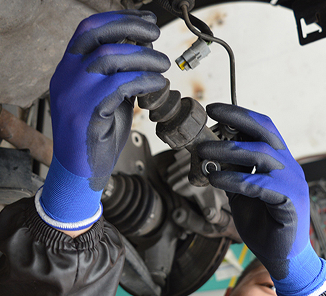 產(chǎn)品介紹:本手套采用特種纖維針織而成,手掌浸黑色PU,具有防滑、耐磨、耐油、耐臟等功能;手背透氣、吸汗、貼手。