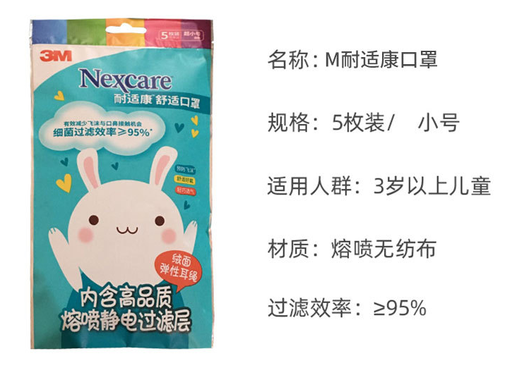 產(chǎn)品名稱:3M耐適康7660+平面舒適口罩小飛機(jī)超小號