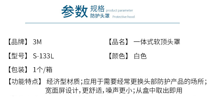 產品名稱:3M S-133S 小/中號白色頭罩(頭圍 50-58厘米)