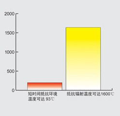 以上圖示為Lakeland工業(yè)隔熱服針對輻射熱和環(huán)境熱防護(hù)性能的相對比較。所顯示溫度值為試驗(yàn)室數(shù)據(jù)的推測數(shù)值,并不能用于代表此防護(hù)服裝實(shí)際使用于這些溫度環(huán)境中。使用者的具體身體狀況,工作環(huán)境,以及實(shí)際工作性質(zhì)都會(huì)對防護(hù)溫度及暴露時(shí)間產(chǎn)生不確定性。